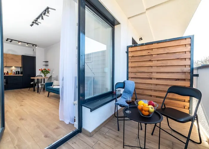 1-pokojowy Apartamenty Przy IV Śluzie - LUX 50m2 położony jest 19 min piechotą od Centrum konferencyjnego Opera Nova i obejmuje patio i garderobę z widokiem na patio. Apartament o powierzchni 50 m^2 oferuje szereg luksusowych udogodnień, w tym słoneczny taras, patio i ogród, które są idealne do relaksu gości.